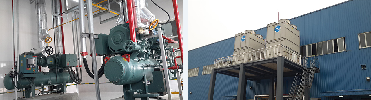 一座單層鋼結(jié)構(gòu)冷庫。本項目為固定貨架裝配式冷庫,采用封閉式降溫穿堂(3±2°C)。1號、2號冷庫庫溫-18°C~-22°C,存儲6014噸。3號冷庫庫溫5°C,容量為229噸。降溫穿堂溫度為3±2°C。采用氨(R717)制冷系統(tǒng),末端吊頂式冷風(fēng)機(jī),手指令自動熱氨融霜。
